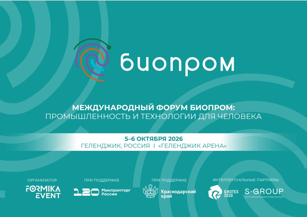 При поддержке Минпромторга России 5 – 6 октября 2026 г. в Многофункциональном культурно-деловом центре «Геленджик Арена» (г. Геленджик, Краснодарский край, Россия) пройдет III Международный форум «БИОПРОМ: промышленность и технологии для человека».